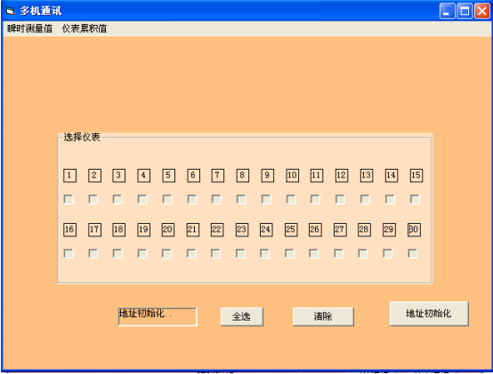 5、这样在您的微机上就会显示出瞬时流量、流速等相应的数据,点击上面通讯方式菜单的多机通讯进入多机显示画面