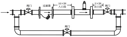 (2)水平安装传感器要求管道不应有目测可察觉的倾斜(一般在5°以内),垂直安装传感 器管道垂直度偏差亦应小于 5°。在不能停流的场所,应装旁通管和可靠的截止阀,测量时要确保旁通管无泄漏。