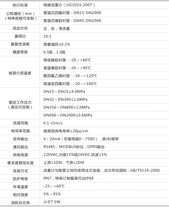 三、电池供电电磁流量计产品技术参数