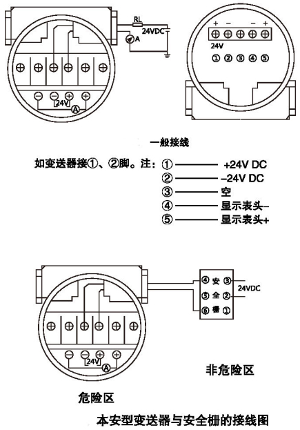 4、变送器的本安导线不得与高压电缆线一起敷设,导线长度应尽量缩短,导线的分布电感、分布电容及变送器的有效电感、有效电容之和,不得超过安全栅规定的额定值。