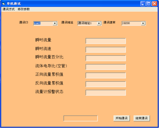 5、这样在您的微机上就会显示出瞬时流量、流速等相应的数据,点击上面通讯方式菜单的多机通讯进入多机显示画面