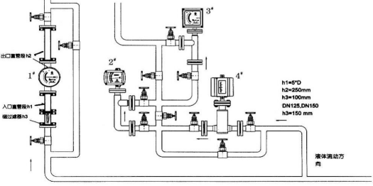 3、为了确保流量计的测量准确性,应在流量计的进口端增加不少于10DN的直管段,出口端不少于5DN的直管段,测量时调节控制阀必须安装在流量计的下游。